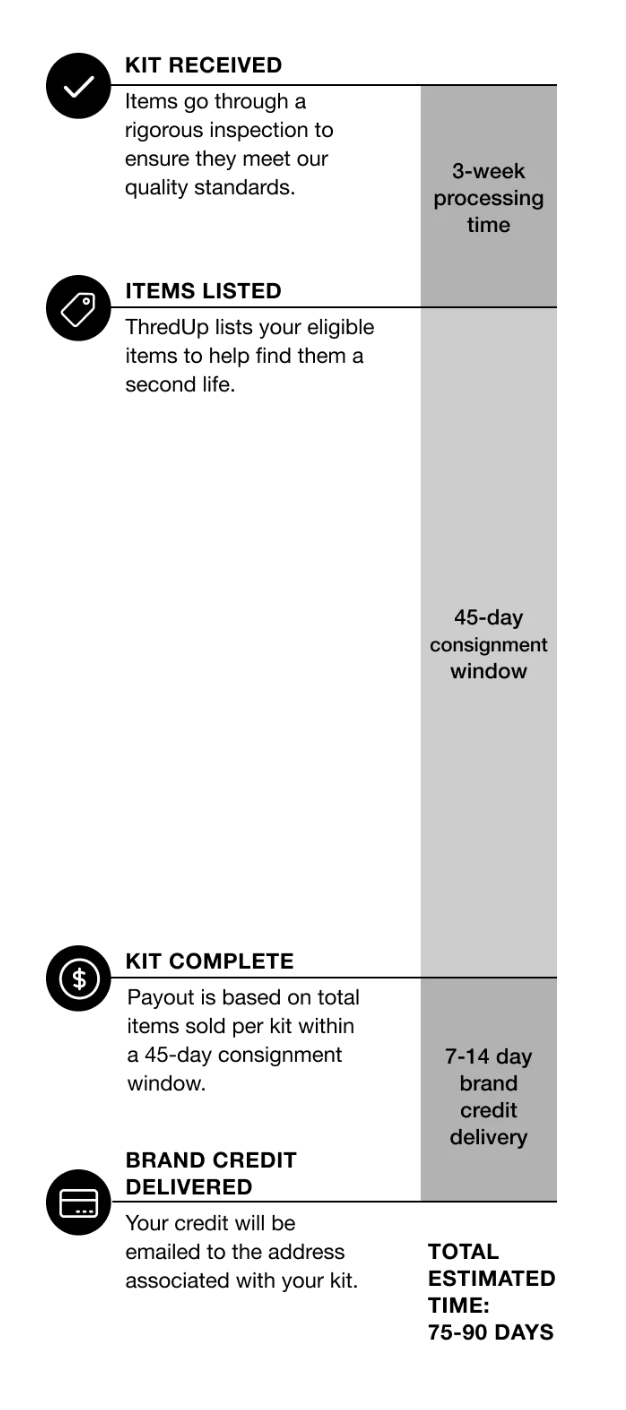 *Lisa Says Gah credit is based on the total items sold per kit within a 45-day consignment window. Once that window has passed, please allow up to 4 weeks for Lisa Says Gah credit to be sent in the form of an e-gift card to the email address associated with your ThredUp kit.